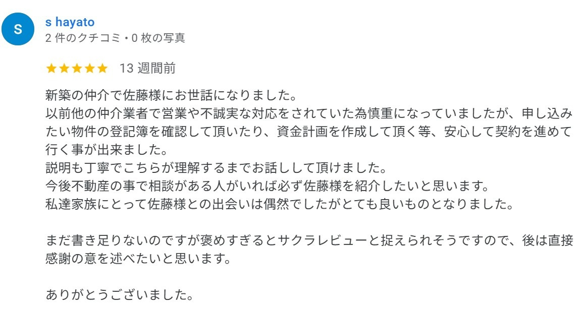 横浜・湘南・川崎・城南エリアの不動産会社ベリーグッドホームTOP > お客様の声一覧 > s hayato様